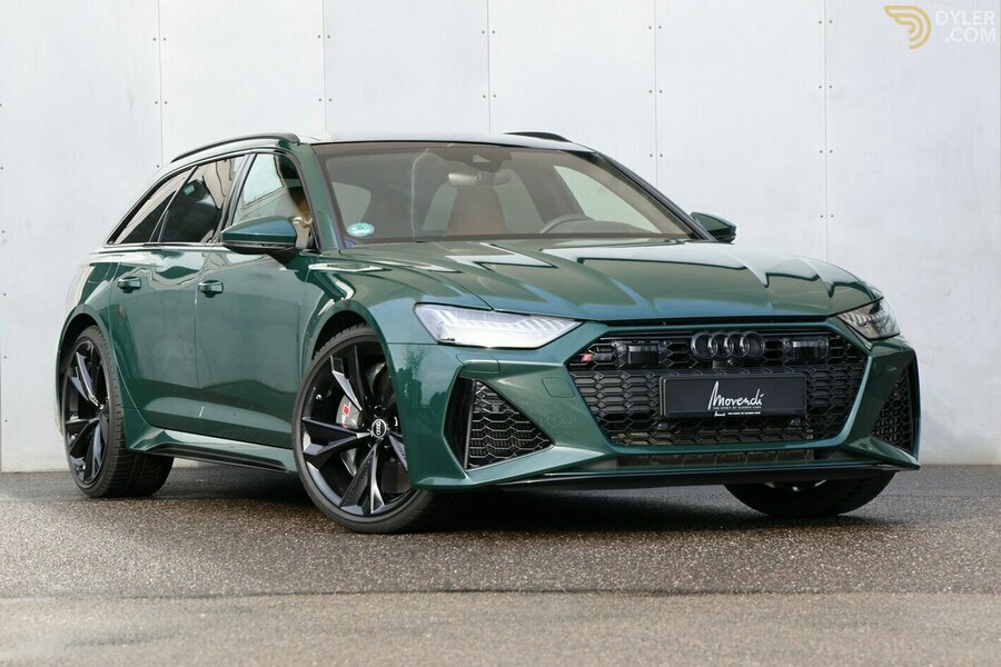 This unique Audi RS 6 was delivered to its current owner in May 2021 via the Audi Center in Essen. The Audi's configuration is very exclusive, in Goodwood Green with a pearl effect and cognac-colored leather: Volcano with honeycomb stitching. Otherwise, the equipment is complete, including auxiliary heating, soft close, Bang & Olufsen sound system with 3D sound, acoustic glazing, multifunction camera, ceramic brake system, panoramic roof, 8-fold tires on 22-inch aluminum wheels, head-up display, camera-based traffic sign recognition, etc. The vehicle has been serviced exclusively at the Audi Center in Essen and the extendable warranty is valid until May 10, 2026. A wonderful opportunity to purchase a unique Audi RS 6 Avant in almost new condition.