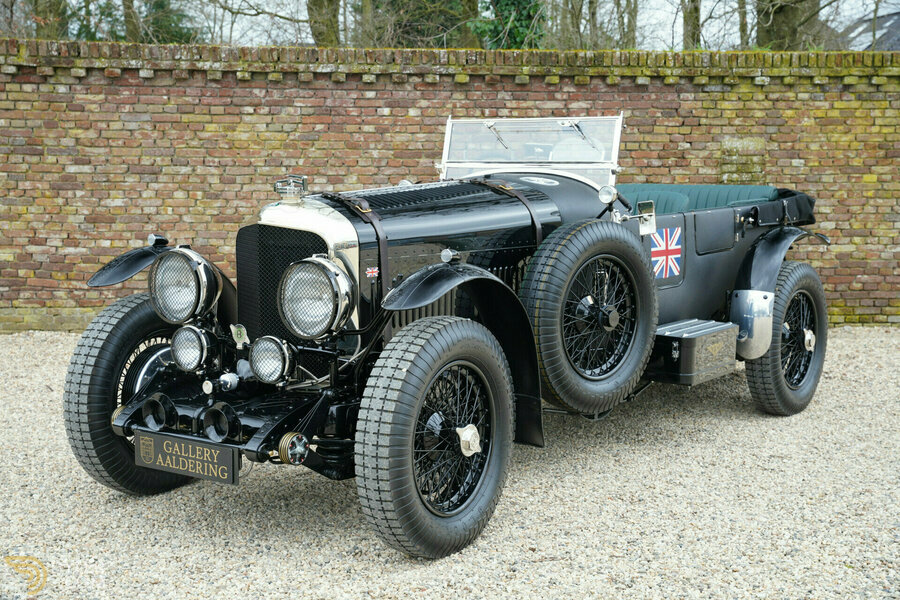 We are dealing here with a Bentley Speed 8, the legendary racer that made its name with two victories at Le Mans during the 24-hour race. Although it may look nearly 100 years old, this is not the case. Connoisseurs will recognize that this car was built by Racing Green Engineering, a renowned specialist in crafting "reincarnations" of old Bentley race cars on demand.