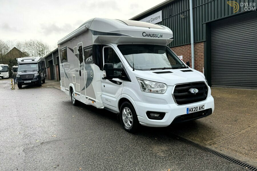 *** NEW ARRIVAL *** Presenting this stunning 2020 Chausson Titanium 708 on the Ford Transit chassis with the ever popular automatic gearbox on the 170BHP option.This 6 berth 4 belted motorhome has multiple feature courtesy of factory selections and the previous owner.The layout consists of spacious front lounge with seating group upto 6 people with parallel sofas with split dining table on telescopic table base which converts to additional 3rd double bed option. Primary second electric drop down double bed with ladder access. ample overhead storage cupboards and LED lighting throughout.The well equip kitchen features single stainless bowl sink with chrome mixer tap and glass lid cover, Gas oven/grill with 3x burner gas hob and glass lid cover. overhead cupboard and under counter draw and cupboards. Opposing kitchen is the main control panel and Truma Combi boiler Diesel/Electric heating control panel, TV point with 12v and 240v connections, regulator for roof mounted solar panel, Tall tech tower fridge freezer with automatic energy selection.Slide door divide to end bedroom if required.The bedroom area features Large island bed. The island bed is height adjustable to give full height garage if required. overhead storage cupboards and wardrobe, under floor storage recess cupboards, over head Truma 2200watt air-con system. The separate spacious shower cubicle with LED lighting with glass screen door divide. opposing the shower cubicle is the washroom with Thetford electric flush toilet, single bowl square sink, under sink storage cupboard, vanity mirrors, overhead cupboard, concertina washroom door divide to main bedroom area.Moving to the exterior of the motorhome features: roof mounted solar panel, alloy wheels, LED side lights, Large garage, Fiamma Easy Lift 77 bike rack (lowerable rack for easy access for bike install), Reverse camera, Truma Air-Con system, Fiamma F45s awning.Viewing now available and highly recommended todayDisclaimer: Whilst every effort is made to ensure the accuracy of the data shown, it is not a definitive statement of specification of the vehicle and no responsibility will be accepted for errors in listing made on this site.