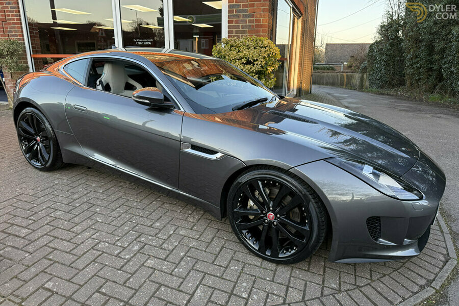 Ammonite Grey Metallic with Cirrus leather with Jet stitching, 3.0 Litre V6 340 Supercharged engine with Quickshift 8-speed automatic transmission with SportShift selector and steering wheel mounted paddles, Equipped with PAS, ABS, Dynamic Stability Control (DSC) with Trac DSC mode, Dynamic mode, Intelligent Stop/Start system, Electric Parking Brake (EPB) with drive-away release, Jaguar Smart Key System with Keyless start, Panoramic glass roof, Navigation system, 8” colour Touch-screen display, Dual zone air conditioning/Climate, Premium leather interior, Performance seats, Seat Memory package, 3-spoke leather steering wheel, Light Hex aluminium centre console, Jaguar Sound System, USB, Auxiliary socket and iPod connectivity, Ambient Interior Lighting, Parking park, Deployable rear spoiler, Bi-function HID Xenon headlamps with washers and LED signature lights, LED tail lamps, Active Sports Exhaust with centre mounted twin exhaust pipes, Sport suspension, Performance Braking System with Silver brake callipers, 20” Tornado Twin spoke alloys in Gloss Black, Originally supplied by Harwoods Jaguar of Gatwick, Complete with original owners book pack/manuals including Original Vehicle Configuration Specification and Vehicle Order and from Harwoods Jaguar, Jaguar Online Service history and spare keys, Full service history, A 1 owner F-Type V6 which has covered just 14,000 miles from new.