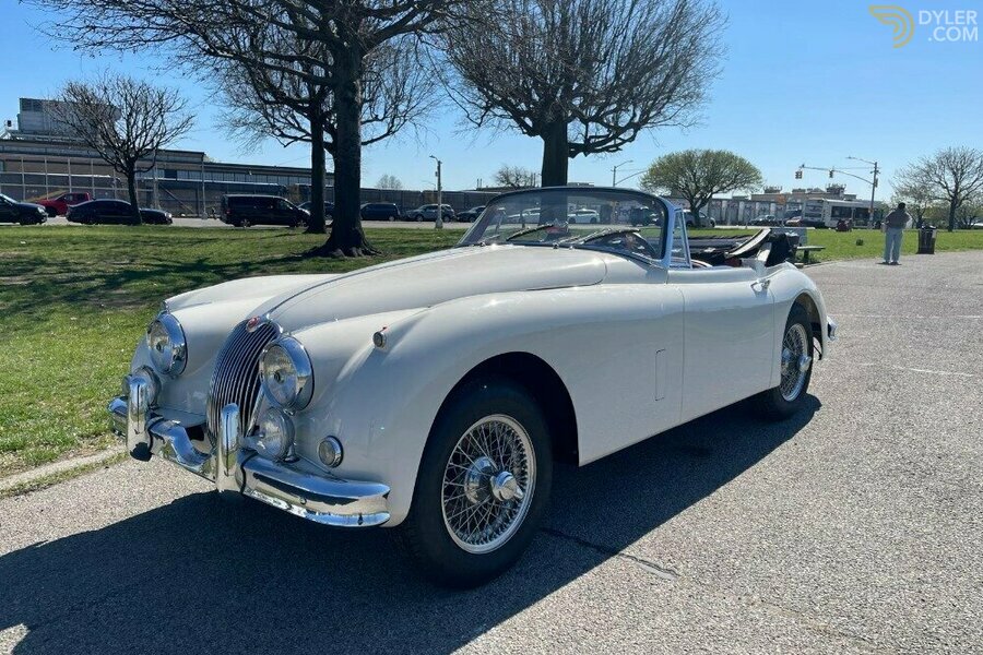 This 1958 Jaguar XK150 Drophead Coupe is a very solid, straight example that has already had significant investment. It is finished in white over a striking red leather interior, with all new chrome and freshly redone upholstery, making it largely ready for completion.