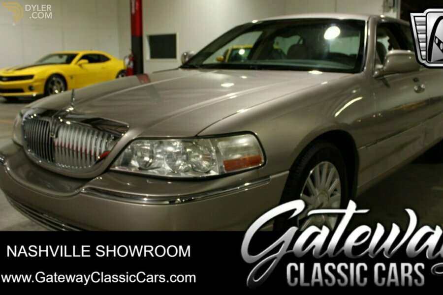 Gateway classic cars of Nashville is proud to digitally present to you this 2003 Lincoln Town Car, a classic embodiment of luxury and performance. This distinguished vehicle boasts a light parchment gold exterior that exudes timeless elegance, complemented by a refined tan leather interior. Under the hood, you'll find a robust 4.6 V8 engine paired with an automatic transmission, delivering a smooth and powerful driving experience.