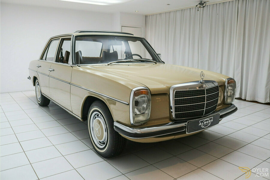 Manufacturer: Albers Sportscars & Classics Kruisstraat 3 9581EA MUSSELKANAAL, NL 0599412803 http://www.alberssportscars.nl [email protected] beautiful and completely original 1974 Mercedes-Benz 200 Strich Acht in Kaschmirbeige, in perfect condition and technically excellently maintained at Mercedes-Benz Classic Sterne. This iconic German sedan combines elegance with robust engineering and is completely original, never restored.Exterior:The exterior of this Mercedes-Benz 200 Strich Acht is finished in the original color Kaschmirbeige. Underneath the car are the original steel rims with hubcaps. The bodywork is in excellent condition and absolutely rust free. The chrome work is in clean condition and the car clearly shows that it has always been well cared for.Interior:The interior of this Mercedes-Benz 200 Strich Acht is finished in brown half vinyl/fabric. The interior is completely original and in perfect condition. The car has the original dashboard and all controls are intact. Extras’s such as the sunroof, chrome mirror and Becker radio are present and in excellent condition.The Technique:This Mercedes-Benz 200 Strich Acht is equipped with the original 2.0-liter four-cylinder engine, which produces approximately 100 hp, combined with a 4-speed manual transmission. The engine runs smoothly, the transmission shifts nicely, and the car drives excellently. Thanks to the maintenance at Mercedes-Benz Classic Sterne, the car is technically in top condition and offers a reliable and enjoyable driving experience.The history:The Mercedes-Benz 200 Strich Acht was delivered new in Germany, has been owned by één owner in the Netherlands for a long time, and since 2024 owned by its last German owner. The car has been carefully preserved and is a rare original that still exudes the charm and authenticity of 1974.